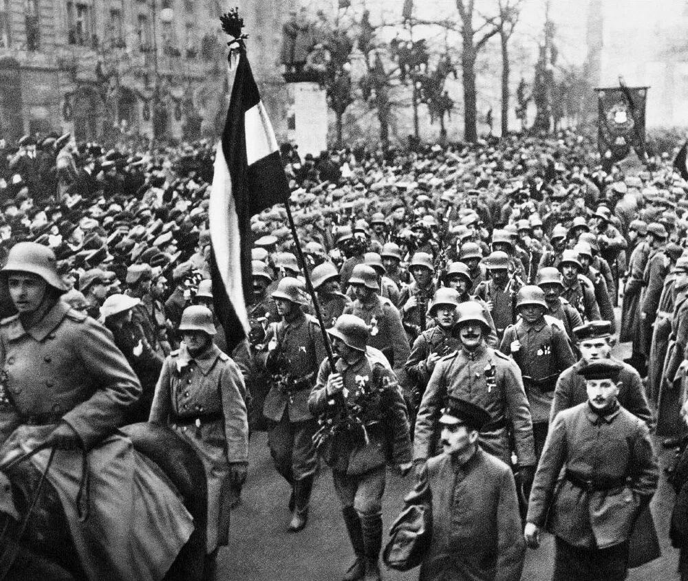 返乡的德军正步前进通过柏林|一战末期